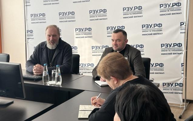 В Минском филиале РЭУ имени Г.В. Плеханова состоялась встреча с клириком Свято-Петропавловского собора г. Минска протоиереем Александром Ледоховичем. Диалог посвятили теме укрепления института семьи как основы устойчивого развития государства. Гость поделился размышлениями о выстраивании отношений в браке, воспитании детей, причинах семейных проблем и путях их преодоления.