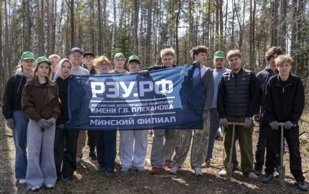 Около 1300 саженцев берёзы высадили студенты и сотрудники Минского филиала РЭУ им. Г.В. Плеханова в рамках Республиканской акции «Лес! Дабро! Парадак!». Акция прошла 14 апреля 2026 г. на территории Пуховичского лесничества Минской области.