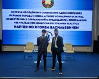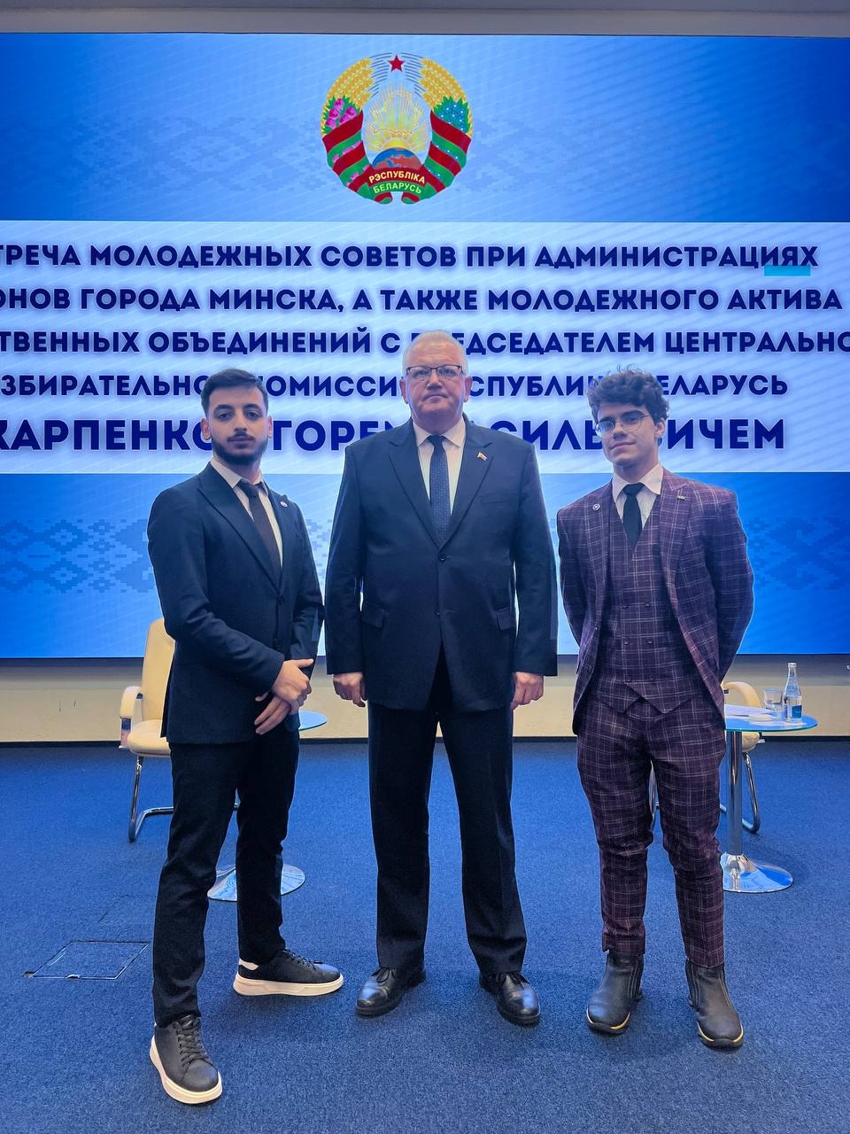 Сегодня, 13 декабря, в конгресс-холле «Юпитер» гостиницы «Виктория» прошла встреча молодежного актива г. Минска с председателем центральной избирательной комиссии Игорем Карпенко, начальником главного управления идеологической работы и по делам молодежи Мингорисполкома Ольгой Чемодановой и политическим обозревателем телеканала ОНТ Игорем Туром в формате открытого диалога. Среди участников мероприятия лидеры Студенческого совета Минского филиала.