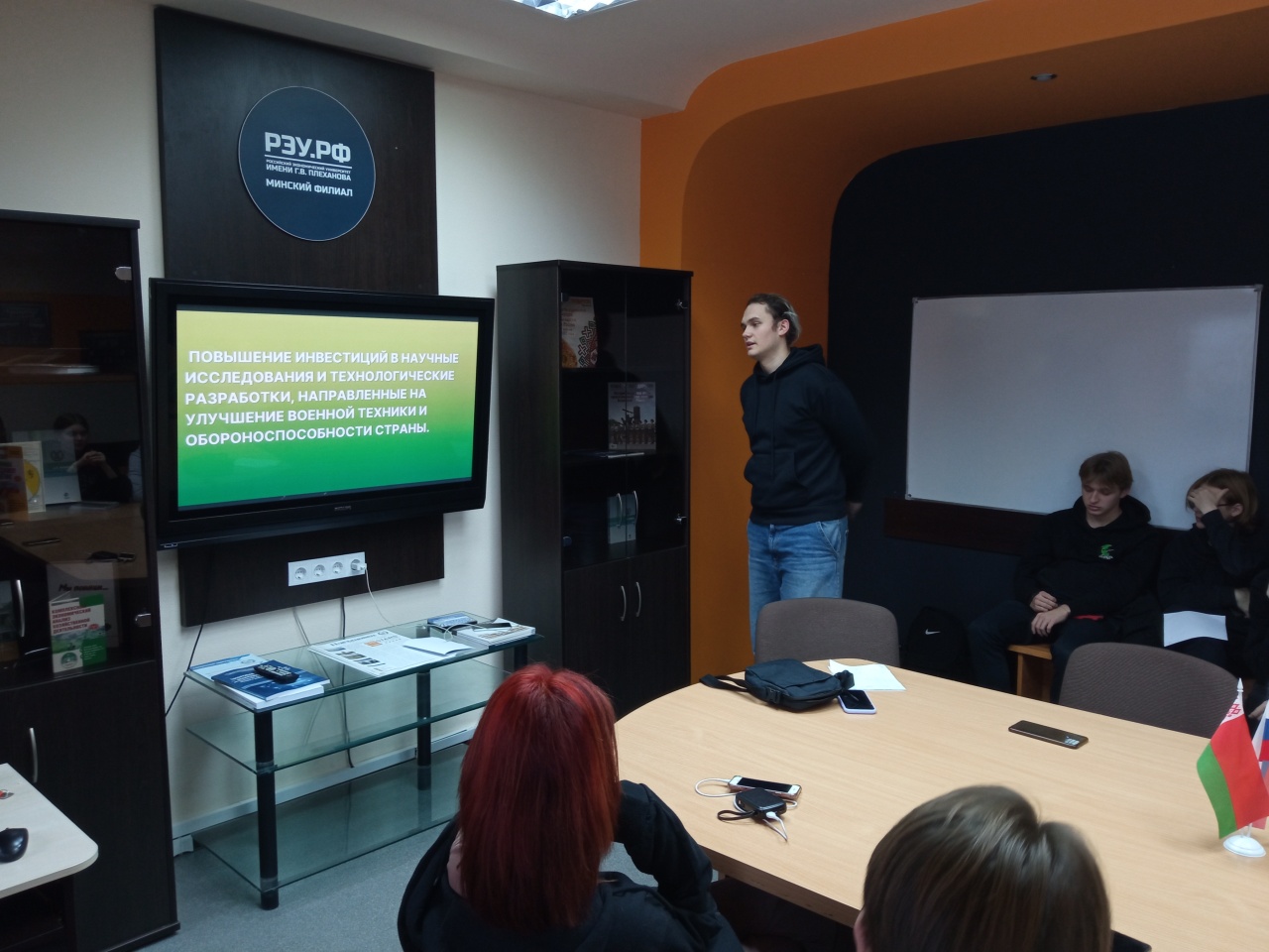 Студенты группы Ми-233-ДМЕ под руководством доцента кафедры менеджмента, учета и финансов Аникина Александра Вячеславовича 8 декабря 2023 года провели дискуссию на тему «Военный конфликт будущего как нелетальный и организованный поединок».