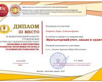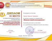 В апреле 2025 года студенты группы ДМЕ-221 Игорь Андреев с научной работой «Комплексная модель эффективности использования краткосрочных активов организации» (научный руководитель – доцент кафедры менеджмента, учета и финансов, канд. экон. наук, доцент Бусыгин Юрий Николаевич) и Евгений Горнак с научной работой «Влияние цифровизации на маркетинговую деятельность финансовых учреждений: проблемы и перспективы» (научный руководитель – старший преподаватель кафедры менеджмента, учета и финансов Ходенков Алексей Леонидович) стали победителями в IX Международном конкурсе студенческих научно-исследовательских работ «Проблемы и перспективы развития экономики региона в условиях нестабильности».