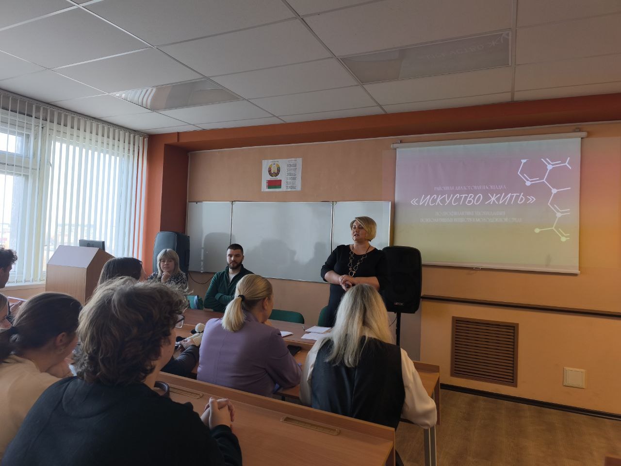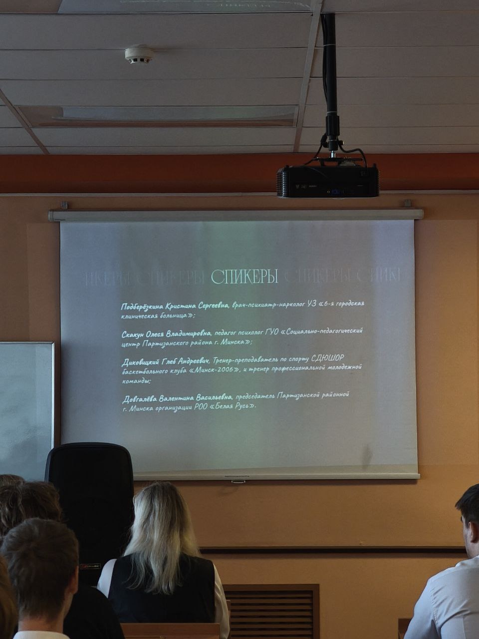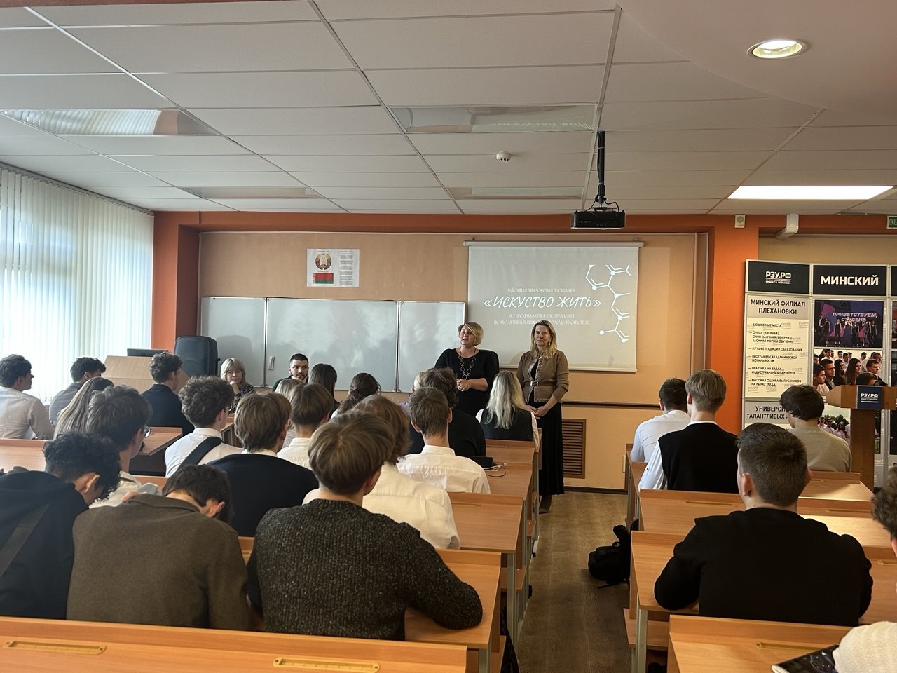 В Минском филиале РЭУ имени Г.В. Плеханова в рамках проекта «Искусство жить» состоялся откровенный разговор, организованный ОО «Белая Русь». Перед студентами выступили приглашенные эксперты: врачи, сотрудники МВД, преподаватели и общественные деятели Партизанского района г. Минска. Тема разговора: «Необратимые последствия наркозависимости».