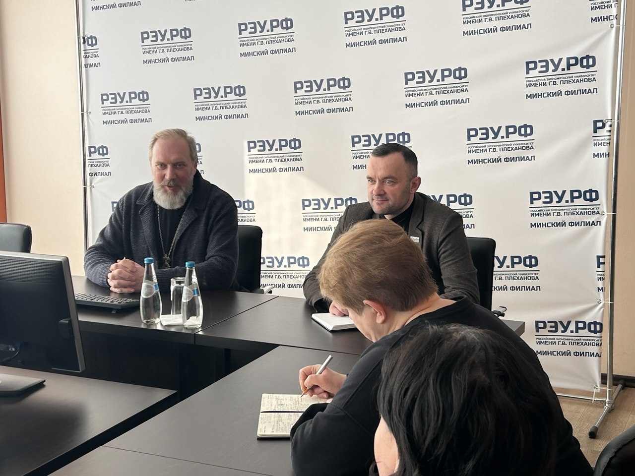 В Минском филиале РЭУ имени Г.В. Плеханова состоялась встреча с клириком Свято-Петропавловского собора г. Минска протоиереем Александром Ледоховичем. Диалог посвятили теме укрепления института семьи как основы устойчивого развития государства. Гость поделился размышлениями о выстраивании отношений в браке, воспитании детей, причинах семейных проблем и путях их преодоления.