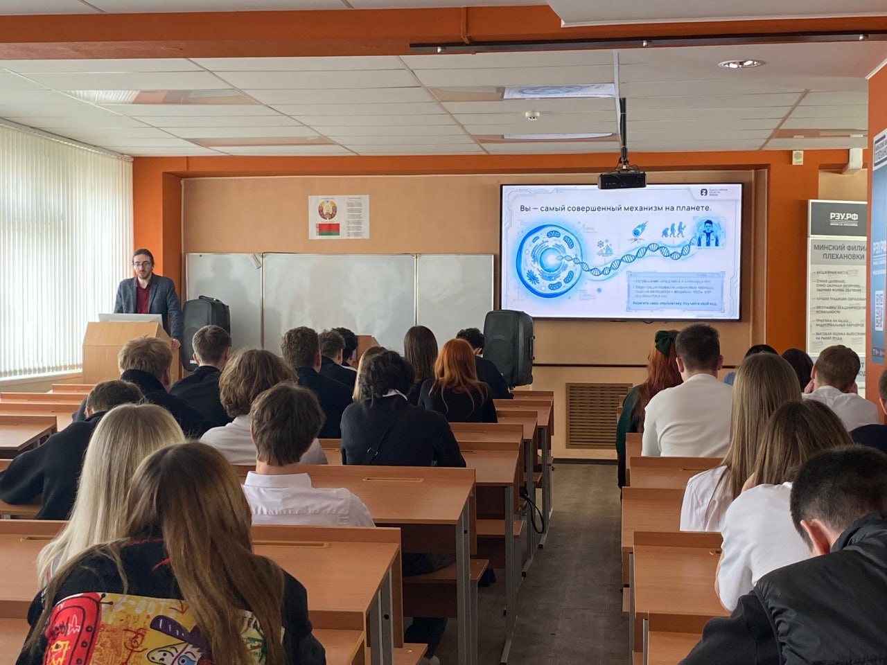 30 и 31 марта на базе Минского филиала Российского экономического университета имени Г.В. Плеханова прошли просветительские лекции от Российского общества «Знание». Мероприятие собрало студентов, которым представилась возможность познакомиться с актуальными направлениями науки и технологий в исполнении опытных лекторов.