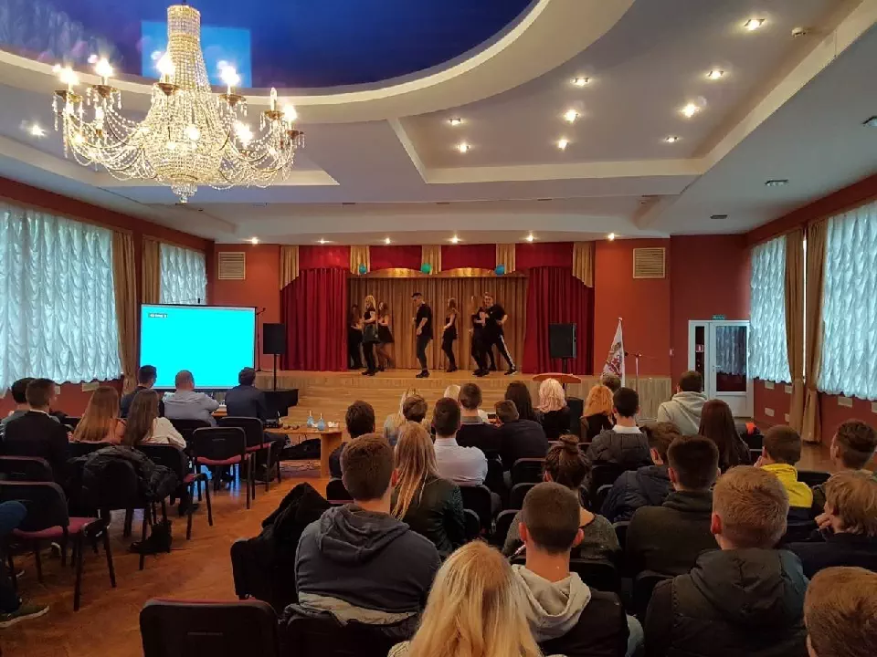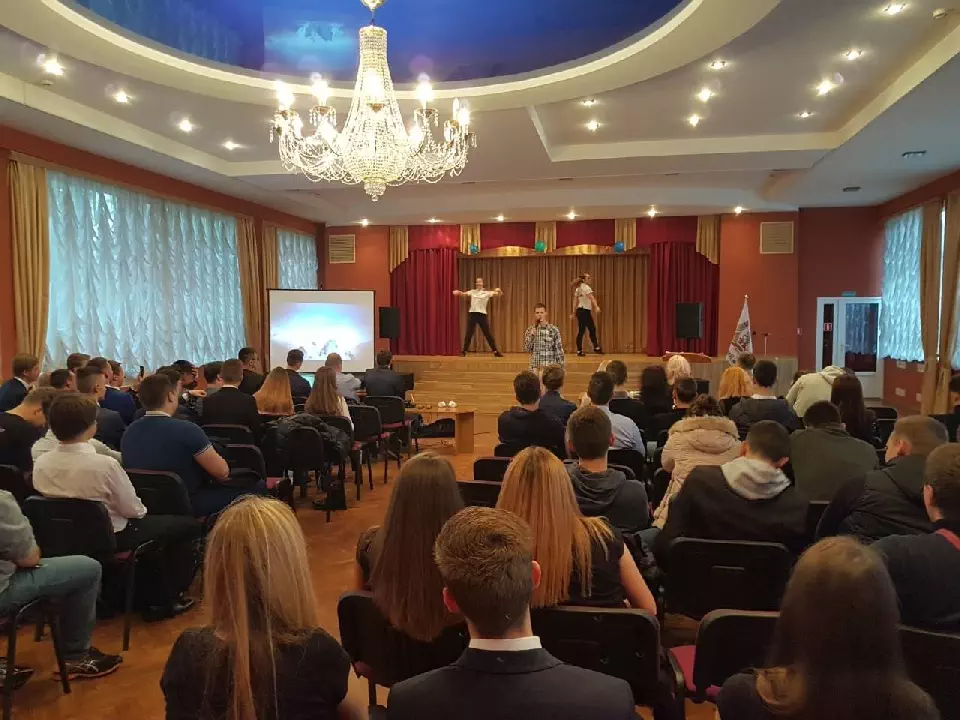 Праздничное мероприятие продолжили выступления творческих коллективов университета. Старшекурсники рассказывали о возможностях проявить себя во всех сферах университета, вместе открывали для первокурсников «мир образования, науки, спорта и творчества».