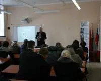 После выступил Елисеев Алексей Борисович, заместитель директора филиала, ответственный секретарь комиссии по приёму в филиал. «Когда абитуриенты выбирают вуз, они прежде всего должны задумываться о работе, которую получат после выпуска».