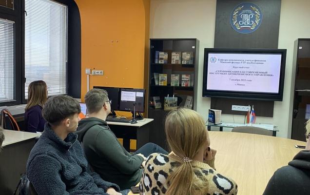 8 декабря 2022 года в соответствии с планом проведения Недели студенческой науки, организованной Минским филиалом РЭУ им. Г.В. Плеханова, старший преподаватель кафедры менеджмента, учета и финансов Тищенко Л.И. провела круглый стол для студентов группы ДМЕ-211 очной формы обучения.