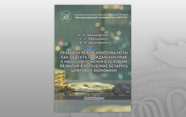 Под научной редакцией заместителя директора Минского филиала РЭУ им. Г.В. Плеханова кандидата юридических наук, доцента Маньковского Игоря Александровича вышла в свет монография «Правовой режим криптовалюты как объекта гражданских прав и налогообложения в условиях развития в Республике Беларусь цифровой экономики».