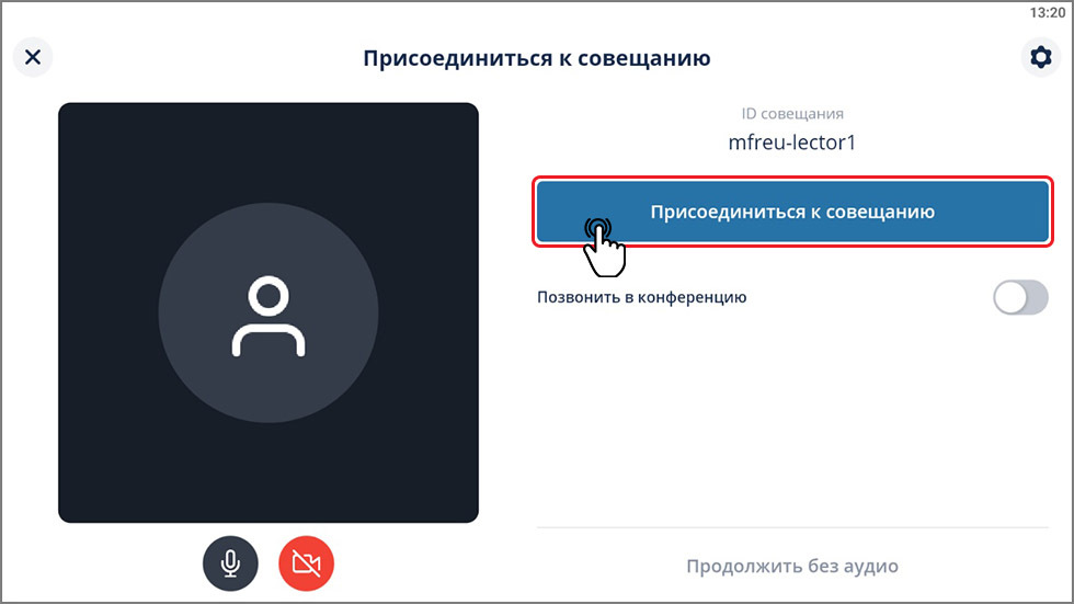 3. Нажмите на кнопку "Присоединиться к совещанию":