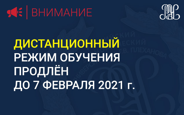 В целях предотвращения распространения инфекции COVID-19 в Минском филиале РЭУ им. Г.В. Плеханова, дистанционный режим обучения для студентов всех форм обучения продлён до 7 февраля 2021 г.